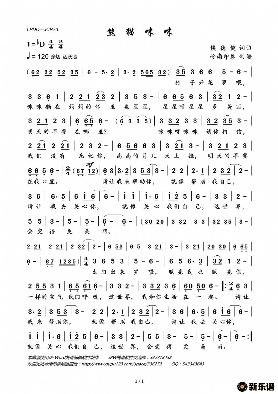 《熊猫咪咪》最新曲谱 程琳-岭南印象制谱