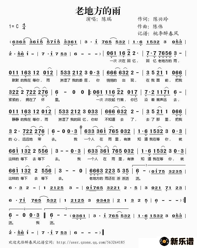 《老地方的雨》最新曲谱 陈瑞-桃李醉春风制谱