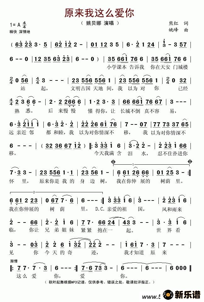 > 原来我这么爱你最新曲谱