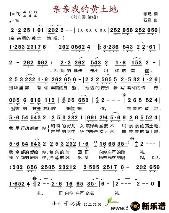 《亲亲我的黄土地》最新曲谱 刘向圆-小叶子制谱