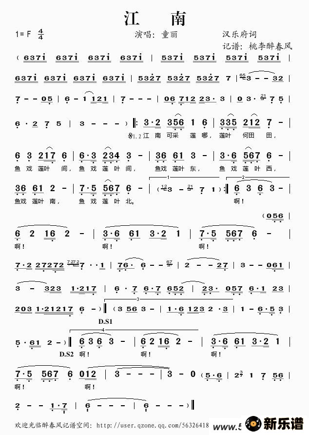 《江南》最新曲谱 童丽-桃李醉春风制谱
