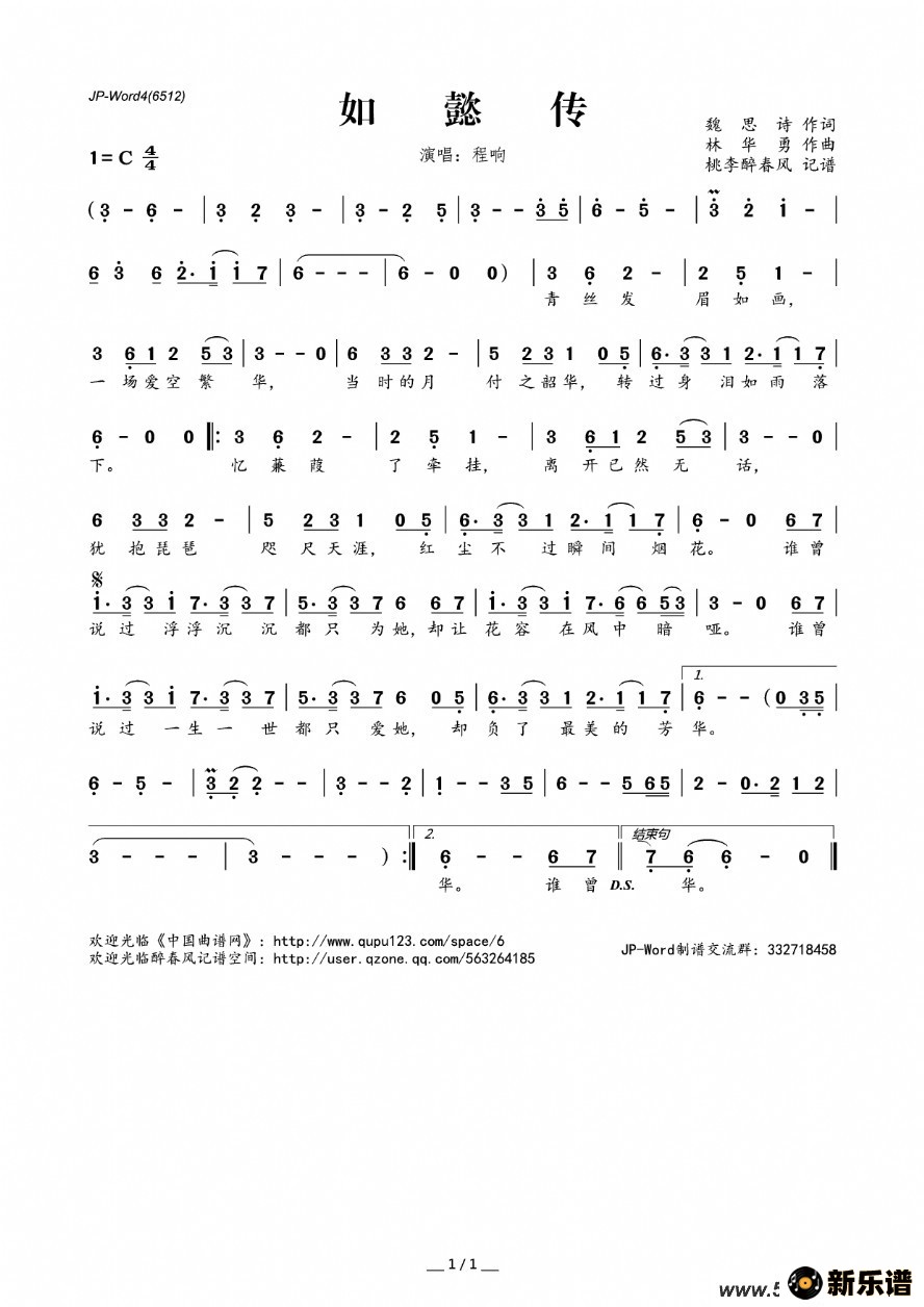程响演唱的如懿传歌词,如懿传最新曲谱.