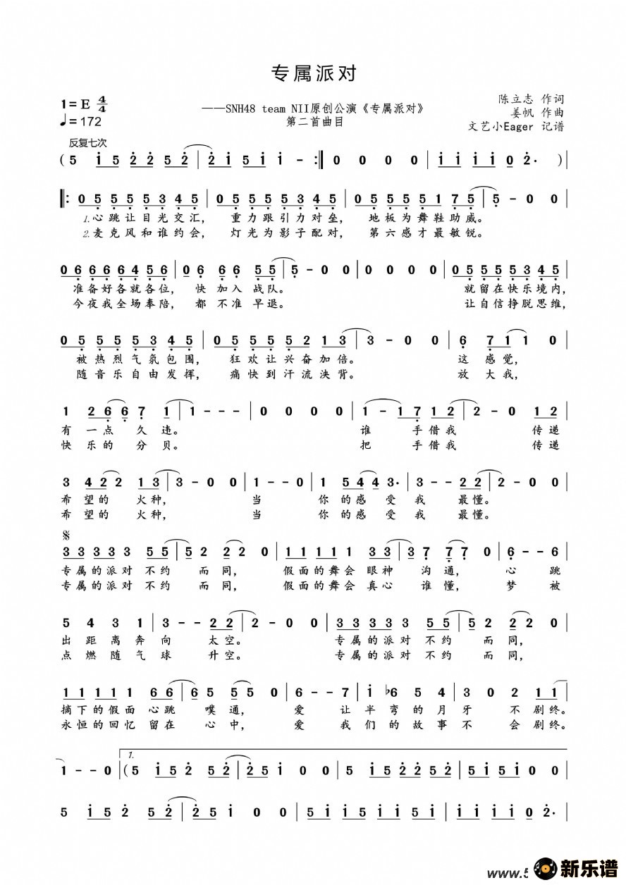 SNH48 team NII演唱的专属派对歌词,专属派对最新曲谱.