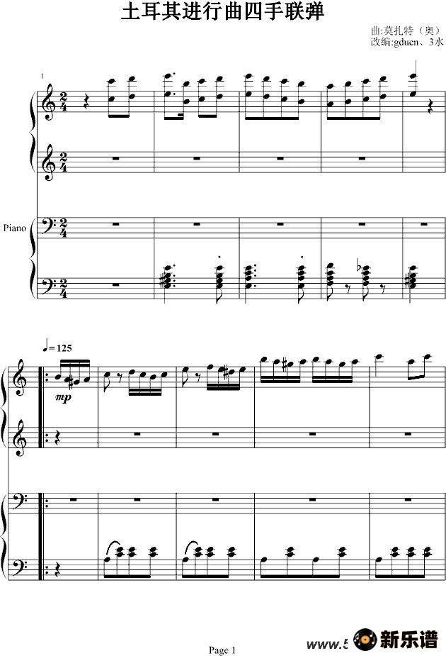 《土耳其进行曲》最新曲谱 周杰伦/李云迪