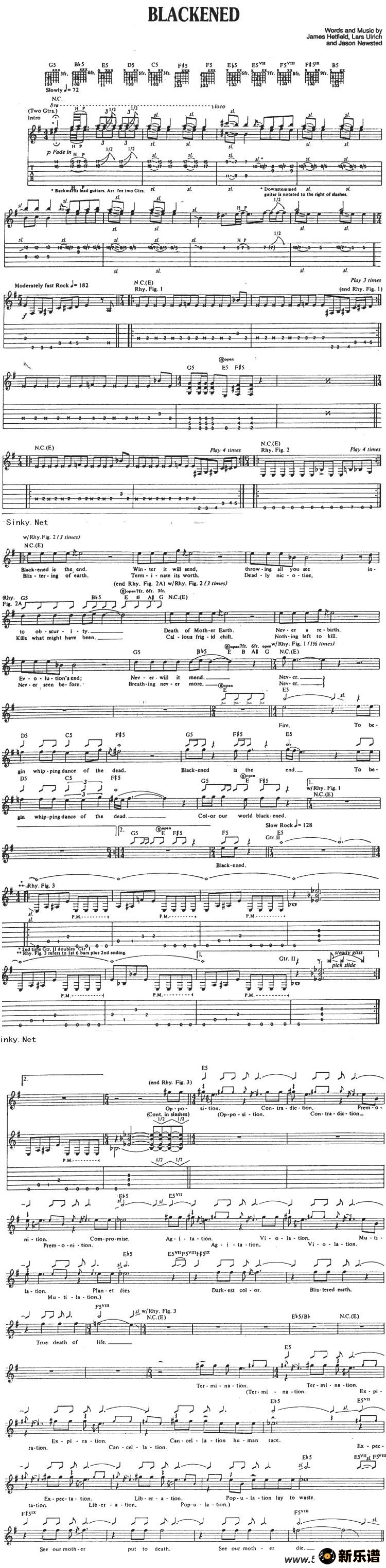 metallica演唱的Blackened歌词,Blackened最新曲谱.