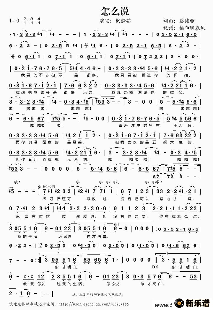 《怎么说》最新曲谱 梁静茹-桃李醉春风制谱
