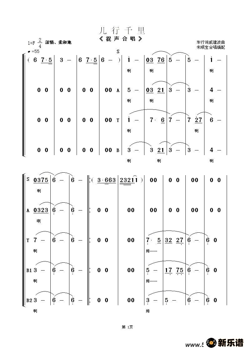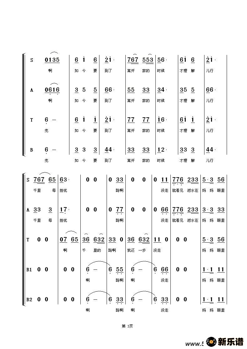 《儿行千里》最新曲谱 南通市夕阳红合唱团