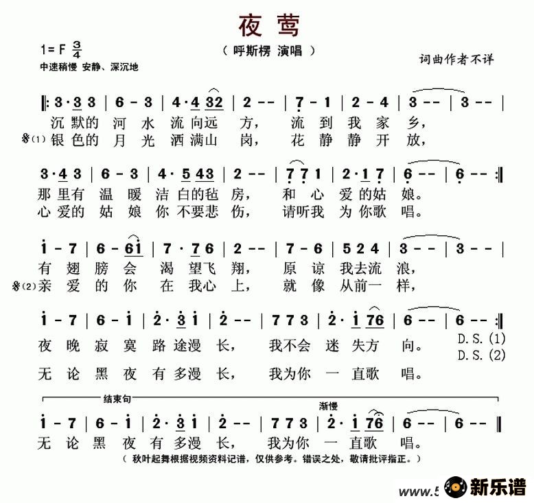 《夜莺》最新曲谱 呼斯楞-秋叶起舞制谱