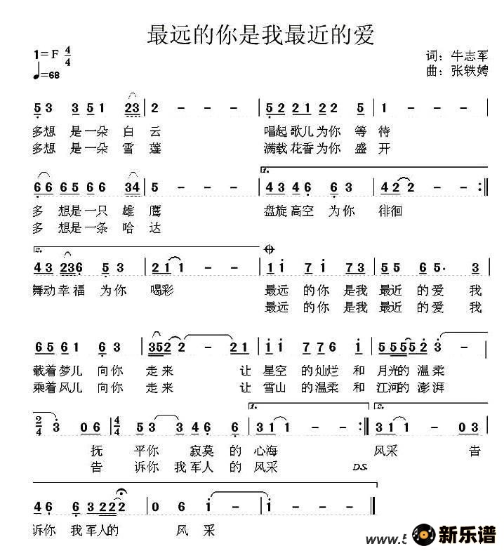 演唱的最远的你是我最近的爱歌词,最远的你是我最近的爱最新曲谱.