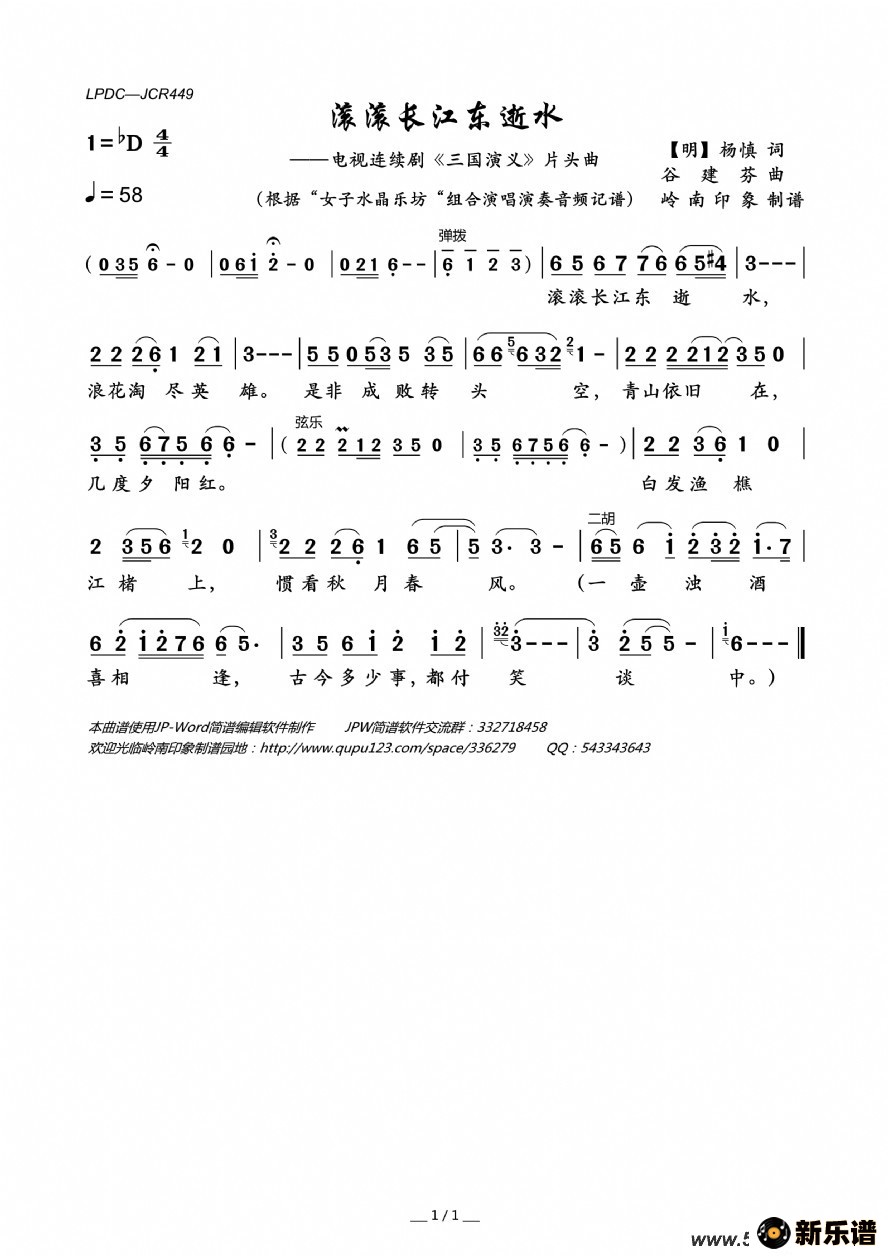 滚滚长江东逝水(电视连续剧《三国演义》片头曲)杨洪基 杨洪基演唱的滚滚长江东逝水(电视连续剧《三国演义》片头曲)歌词,滚滚长江东逝水(电视连续剧《三国演义》片头曲)最新曲谱. 此最新曲谱由新乐谱会员 岭南印象 上传