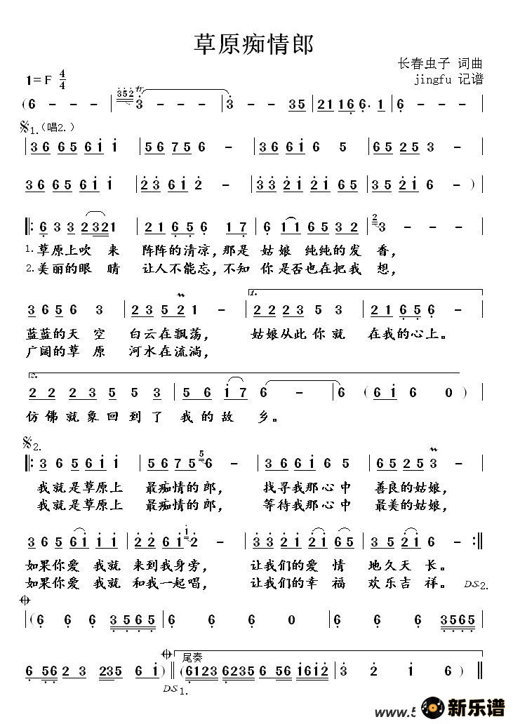 索南扎西演唱的草原痴情郎 歌词,草原痴情郎 最新曲谱.