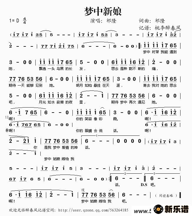 《梦中新娘》最新曲谱 祁隆-桃李醉春风制谱