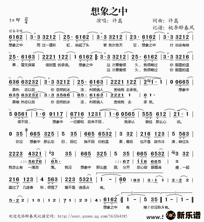 许嵩演唱的想象之中歌词,想象之中最新曲谱.