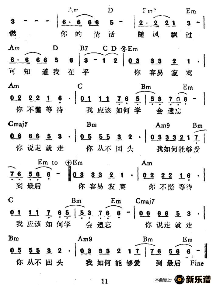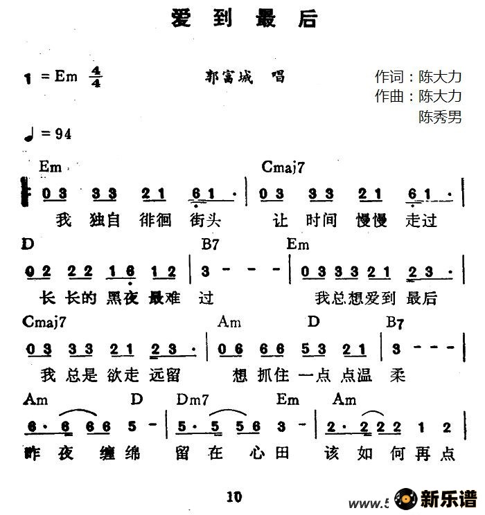 郭富城演唱的爱到最后歌词,爱到最后最新曲谱.