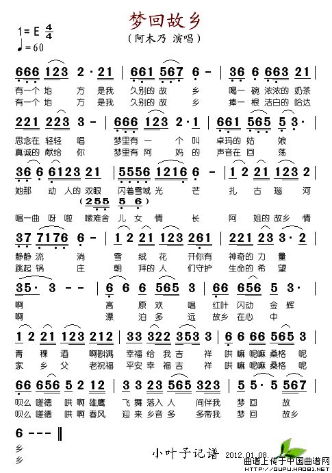 《梦回故乡》最新曲谱 阿木乃-小叶子制谱