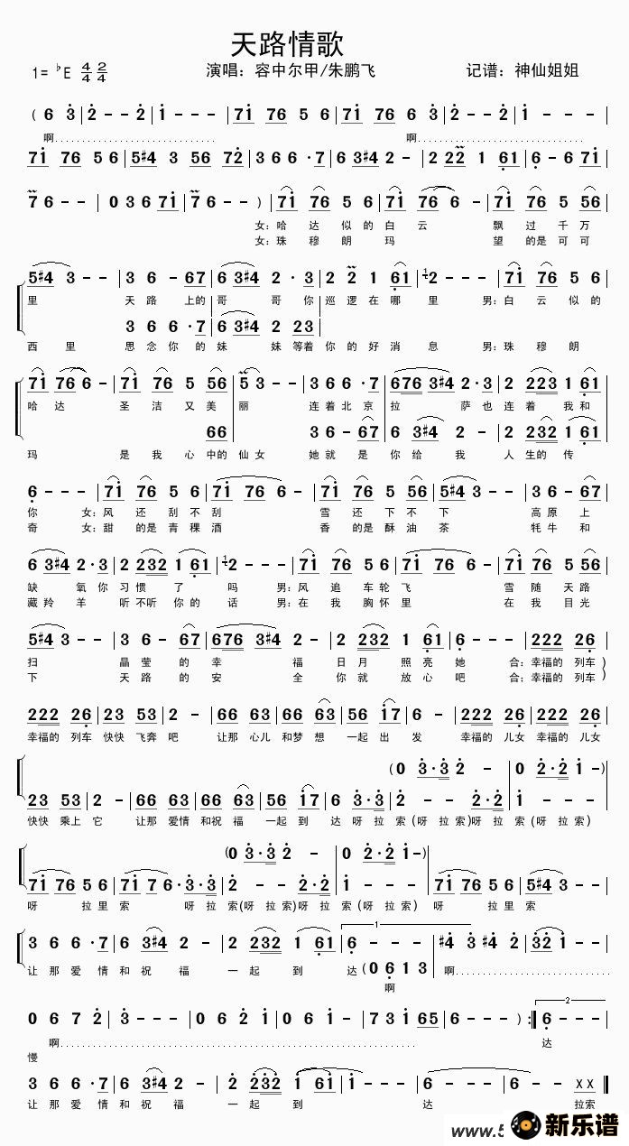 《天路情歌》最新曲谱 容中尔甲、朱鹏飞
