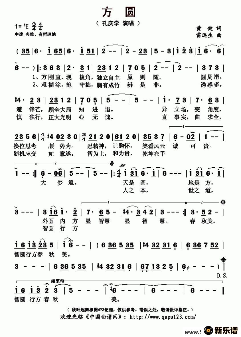 孔庆学演唱的方圆歌词,方圆最新曲谱.