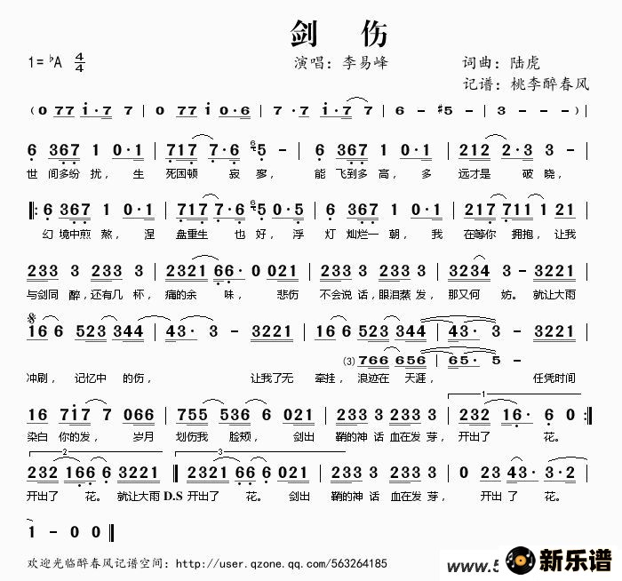 剑伤最新曲谱
