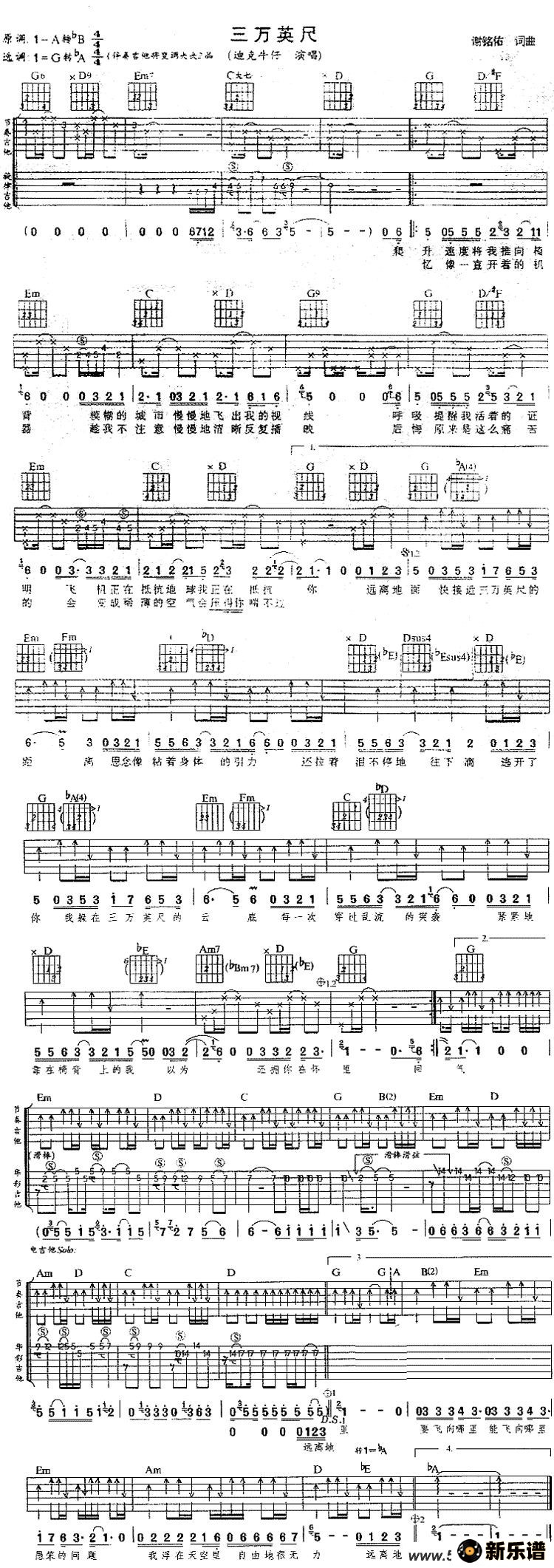 《三万英尺》最新曲谱 迪克牛仔