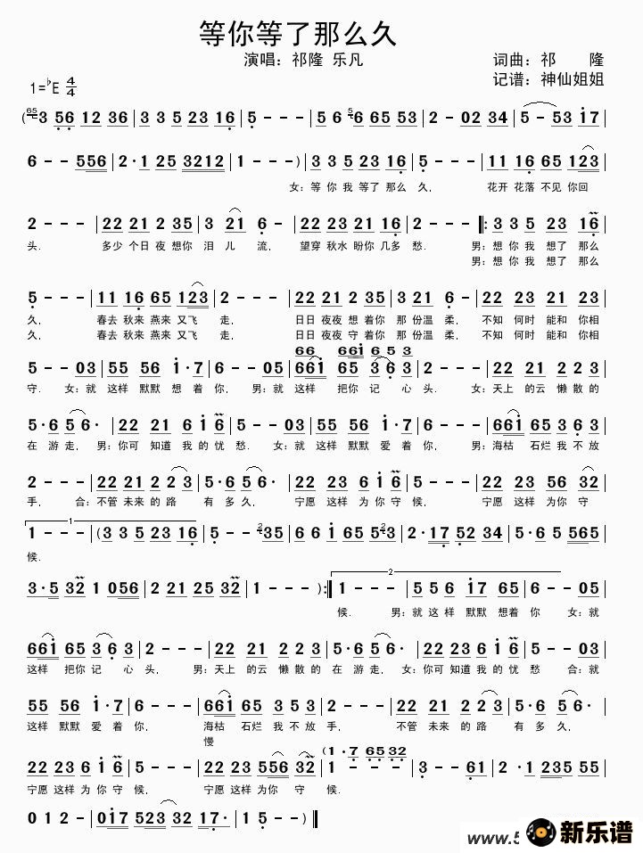 《等你等了那么久》最新曲谱