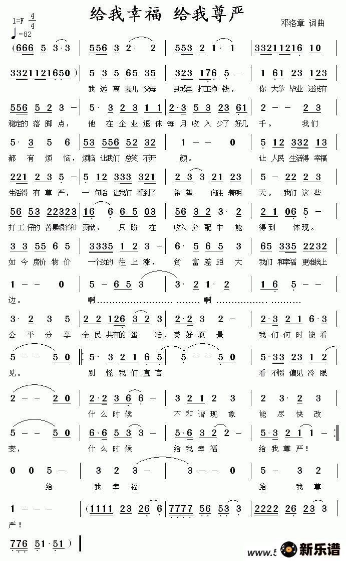 演唱的给我幸福 给我尊严歌词,给我幸福 给我尊严最新曲谱.