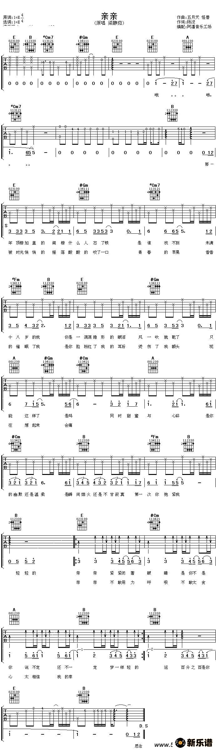 梁静茹演唱的亲亲歌词,亲亲最新曲谱.