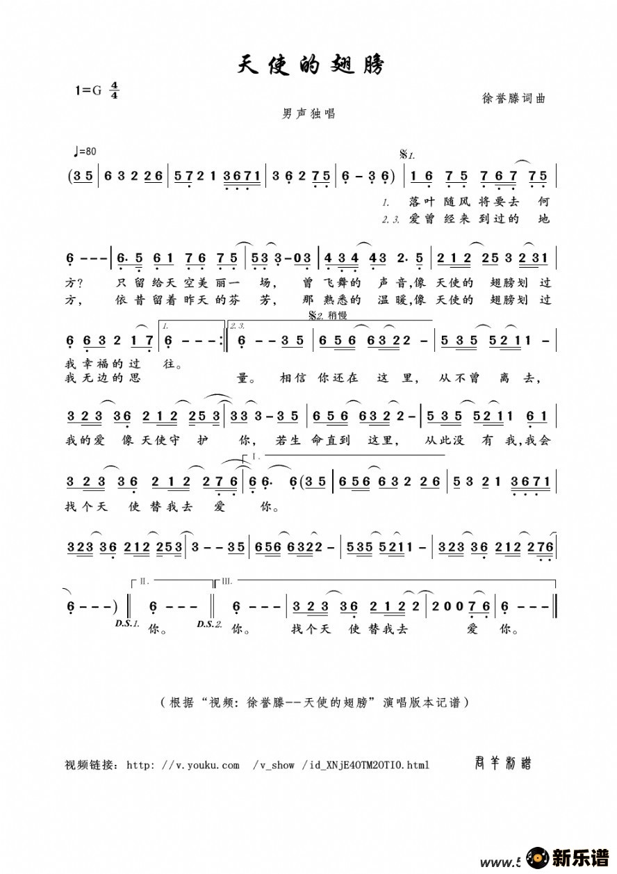 《天使的翅膀》最新曲谱 徐誉滕-君羊制谱