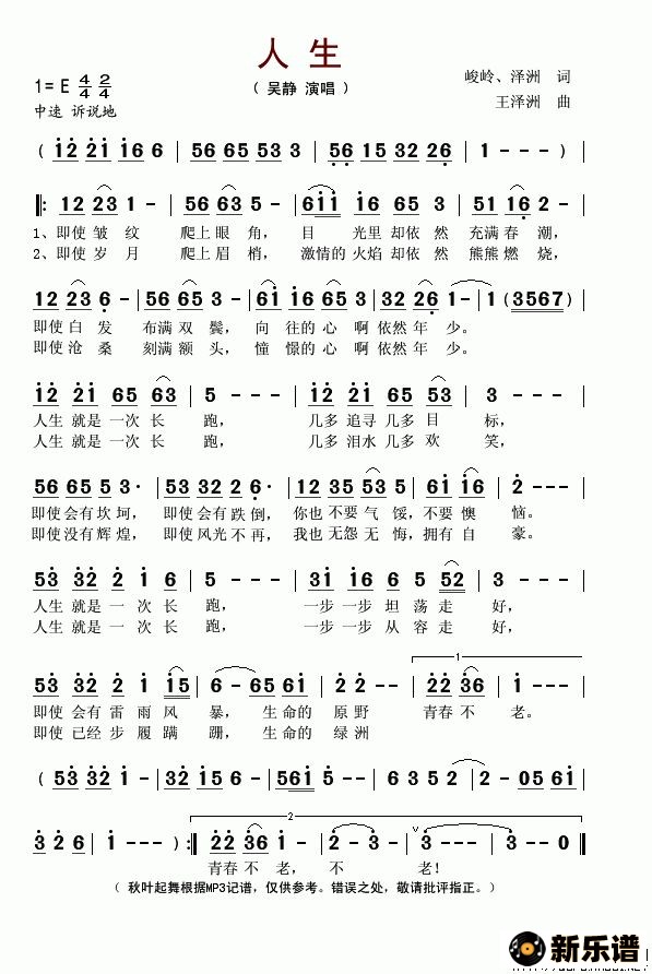 《人生》最新曲谱 吴静-秋叶起舞制谱