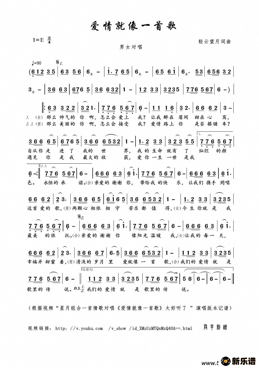 《爱情就像一首歌》最新曲谱 星月组合-君羊制谱