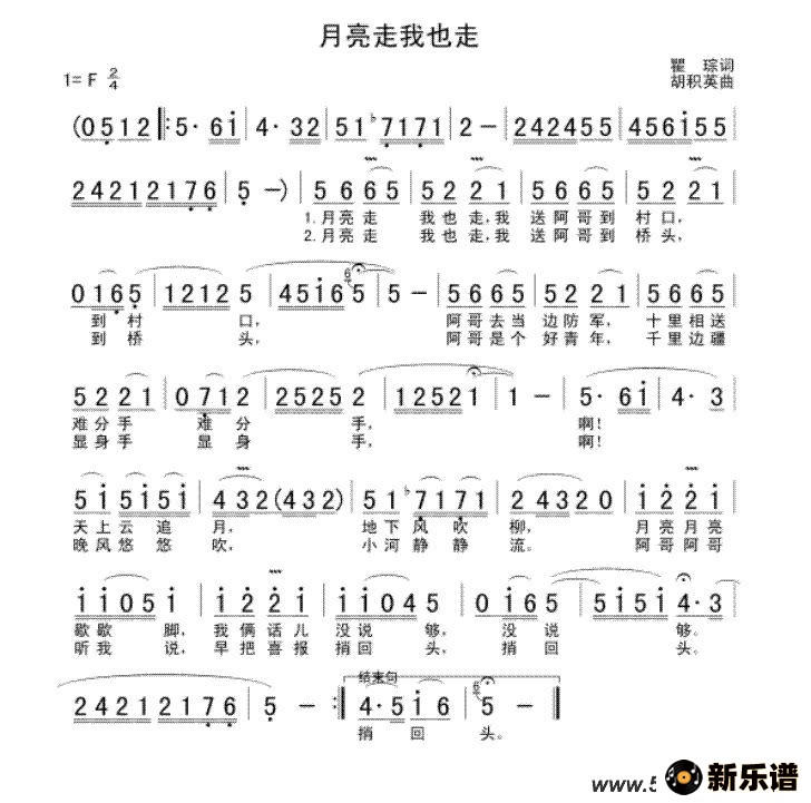 作词:瞿琮 作曲:胡积英(又名:月亮走,我也走)