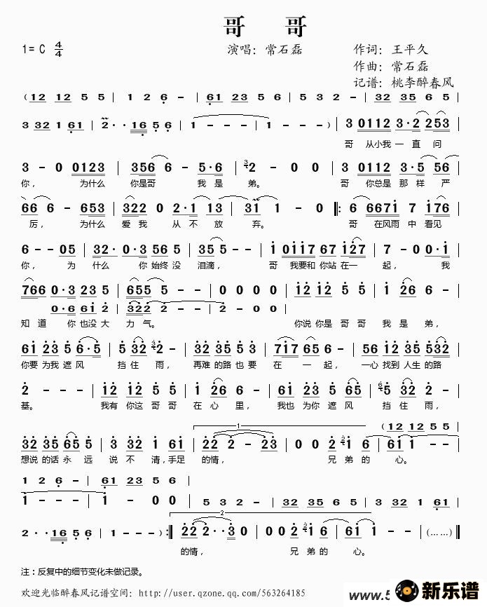 《哥哥》最新曲谱 常石磊-桃李醉春风制谱