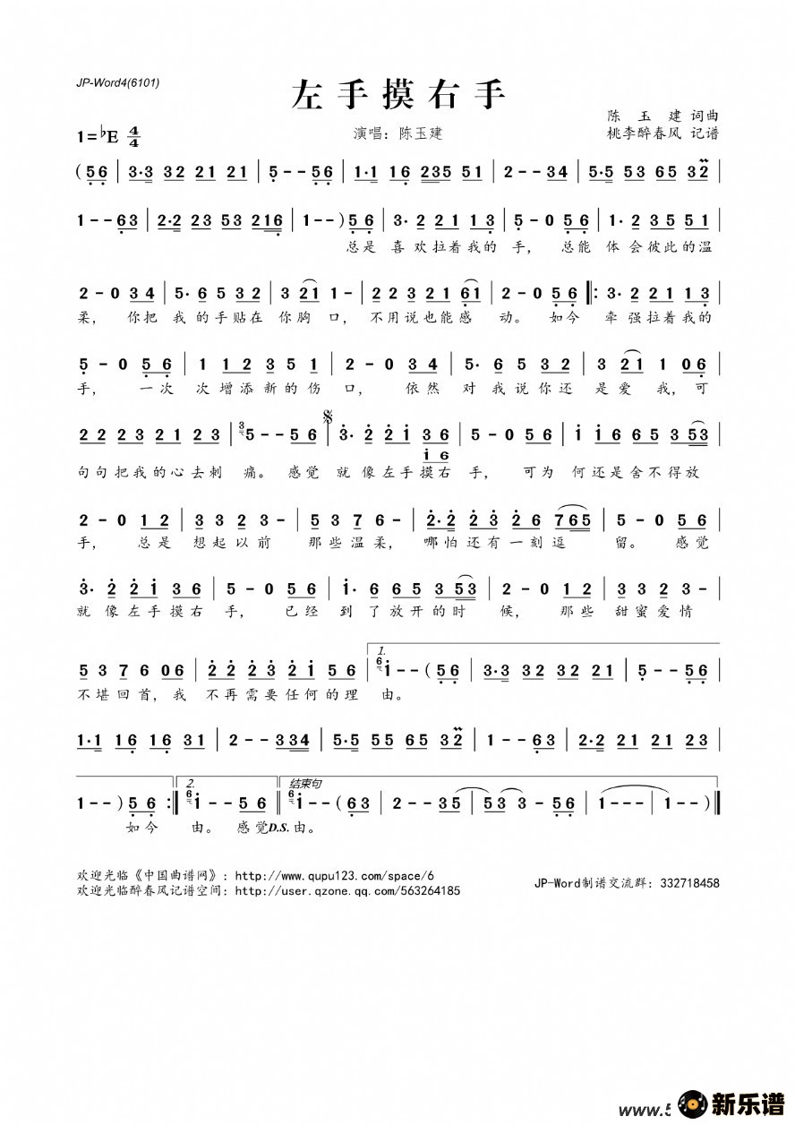 《左手摸右手》最新曲谱 陈玉建-桃李醉春风制谱