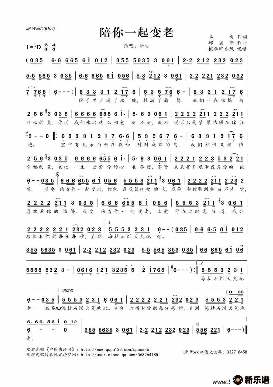 《陪你一起变老》最新曲谱 唐古-桃李醉春风制谱