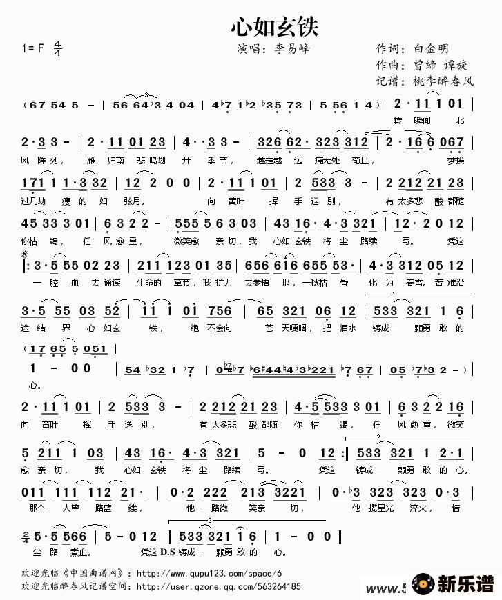 《心如玄铁》最新曲谱 李易峰-桃李醉春风制谱