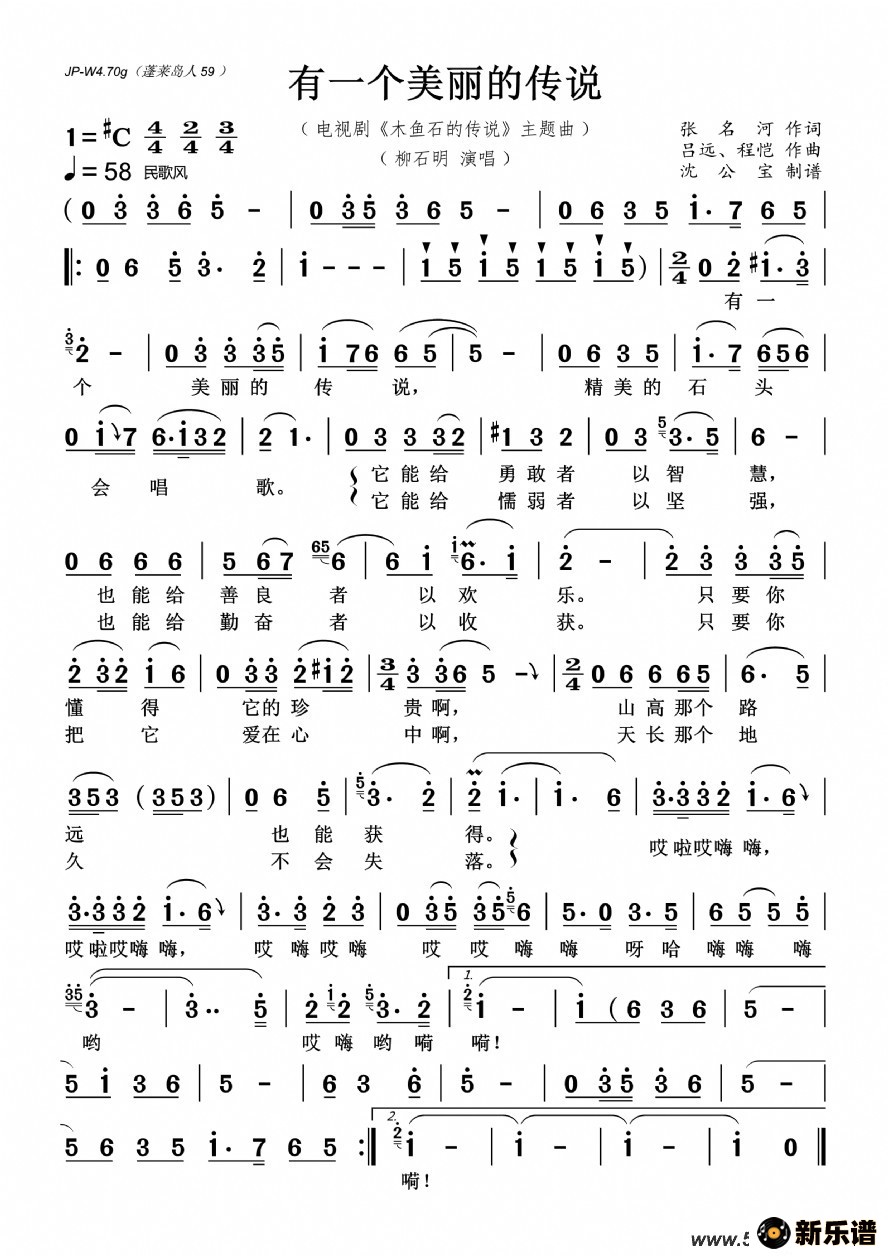 《有一个美丽的传说》最新曲谱 柳石明-沈公宝制谱