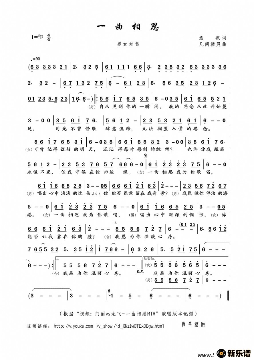 《一曲相思》最新曲谱 龙飞、门丽-君羊制谱
