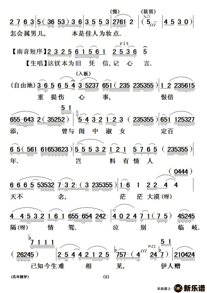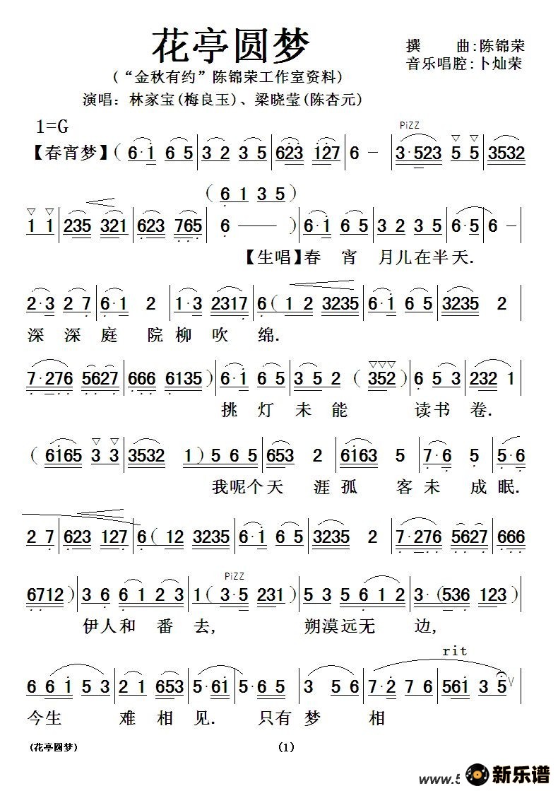 演唱的[粤剧] 花亭圆梦歌词,[粤剧] 花亭圆梦最新曲谱.
