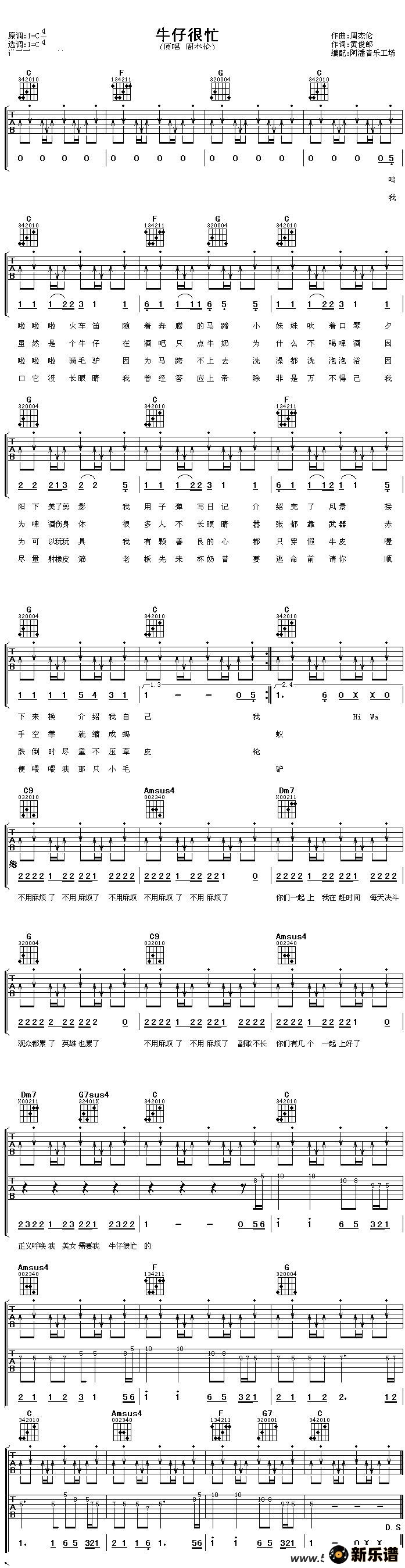 周杰伦演唱的牛仔很忙歌词,牛仔很忙最新曲谱.