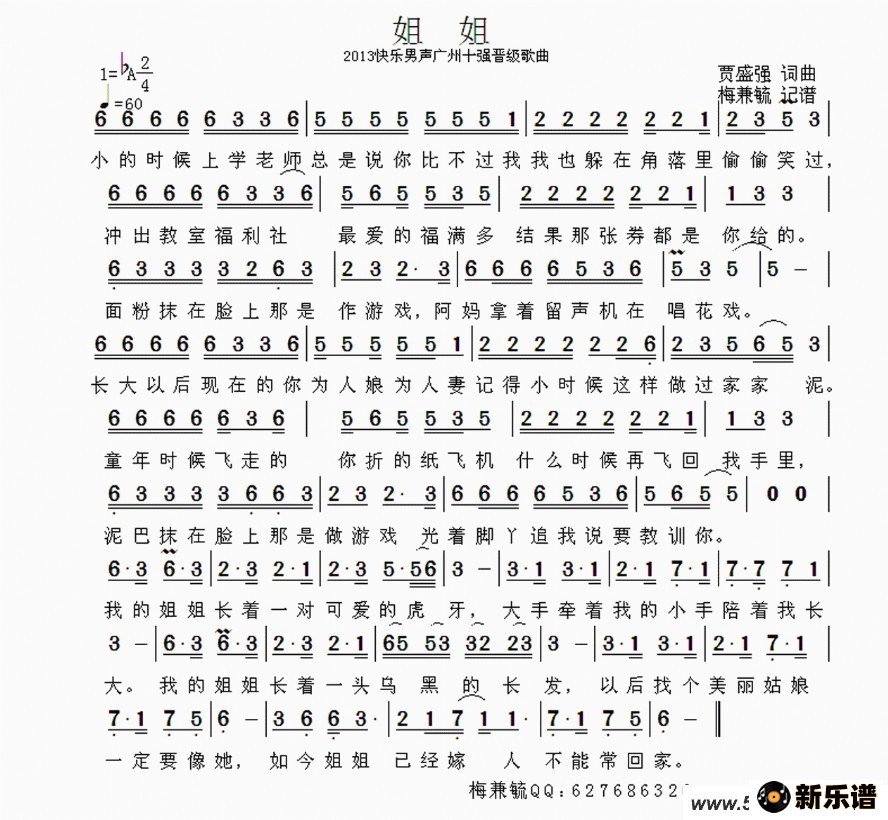 贾盛强演唱的姐姐歌词,姐姐最新曲谱.