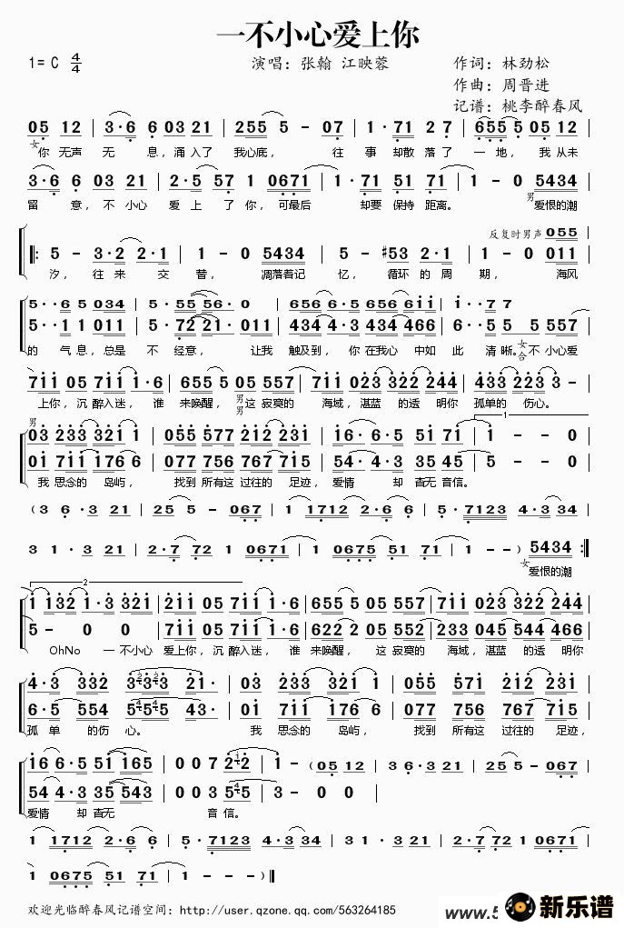张翰、江映蓉演唱的一不小心爱上你歌词,一不小心爱上你最新曲谱.