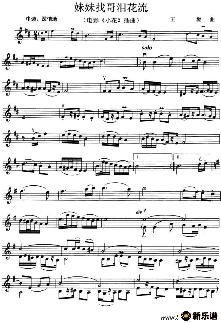 妹妹找哥泪花流(电影《小花》插曲)最新曲谱