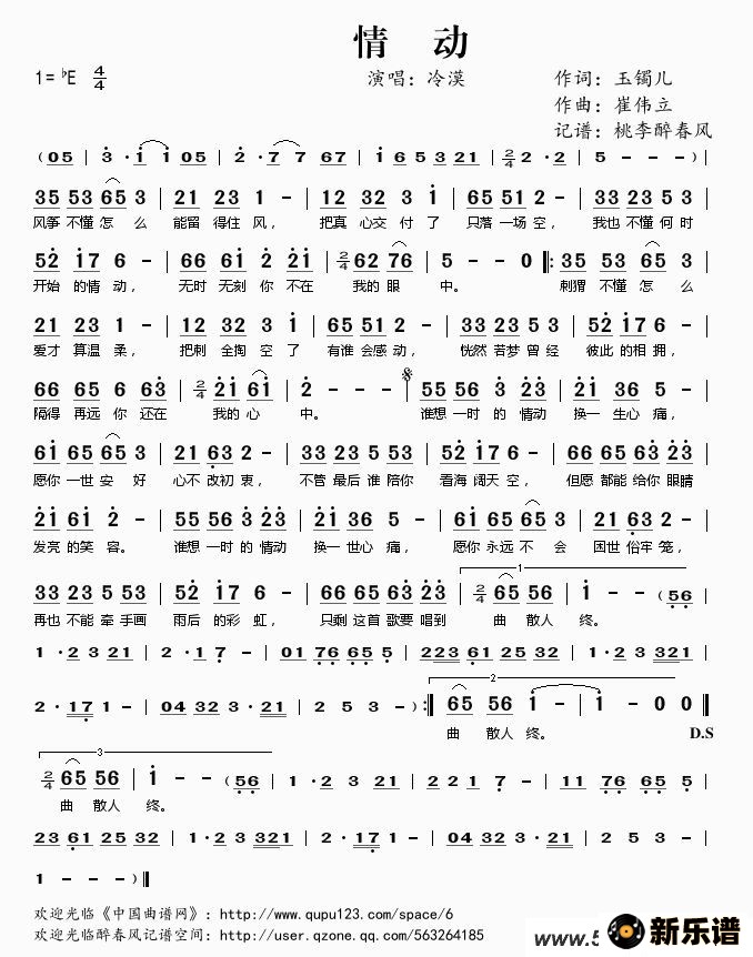 《情动》最新曲谱 冷漠-桃李醉春风制谱