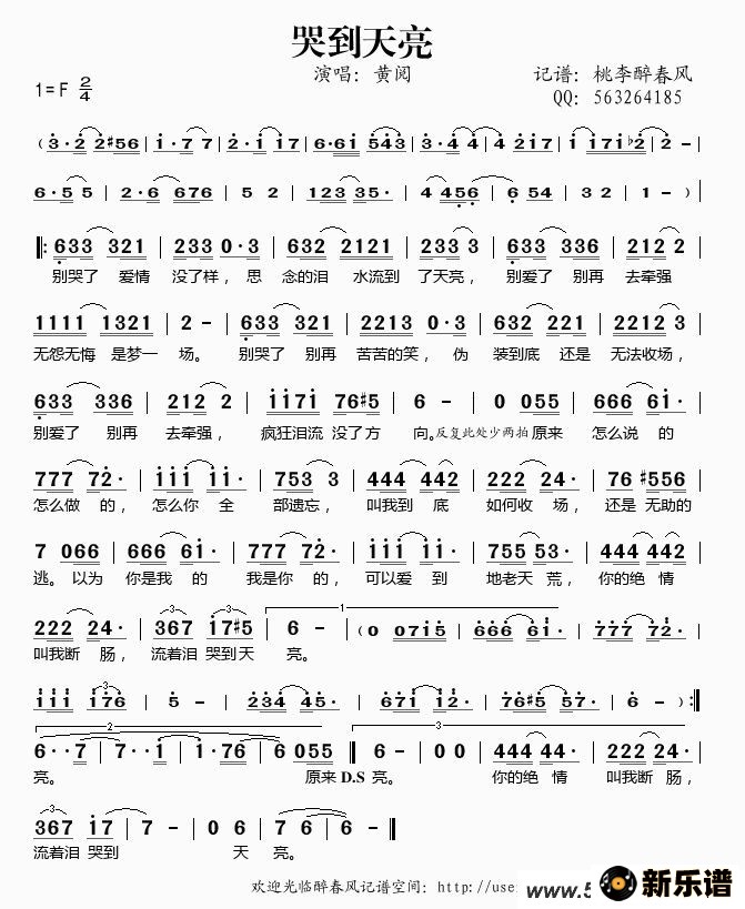 《哭到天亮》最新曲谱 黄阅-桃李醉春风制谱
