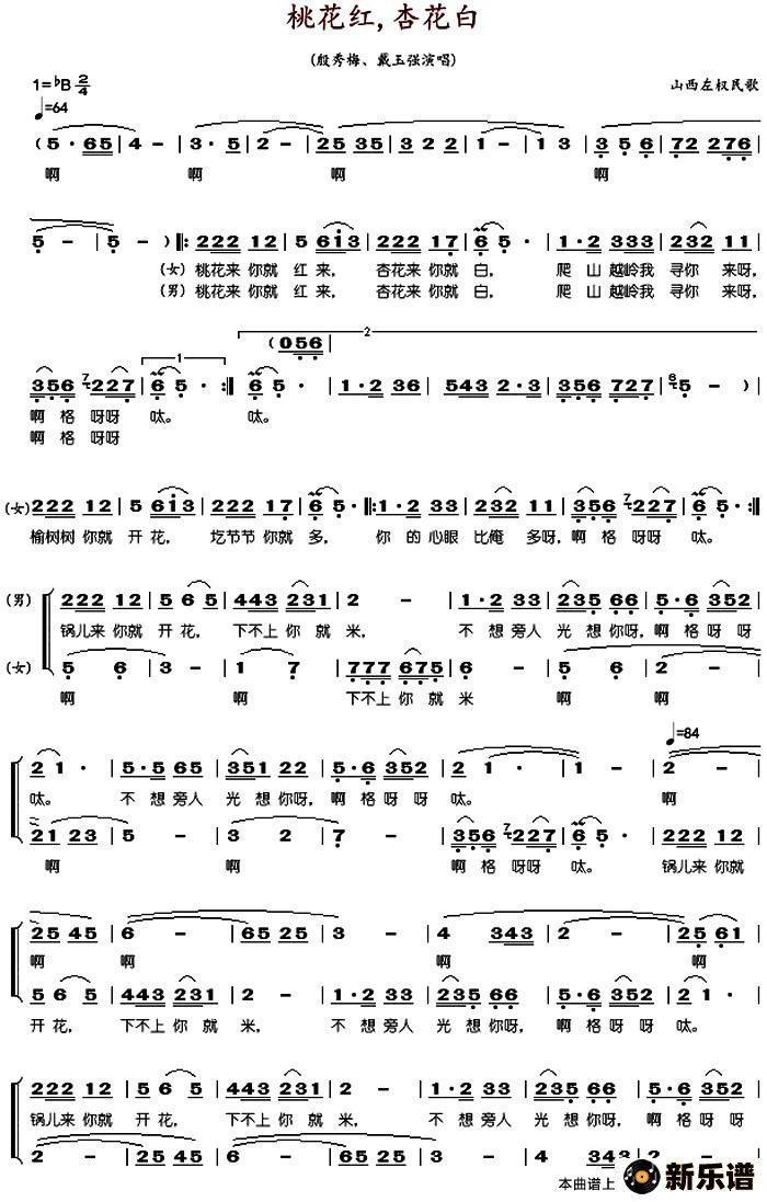 《桃花红杏花白》最新曲谱 殷秀梅、戴玉强