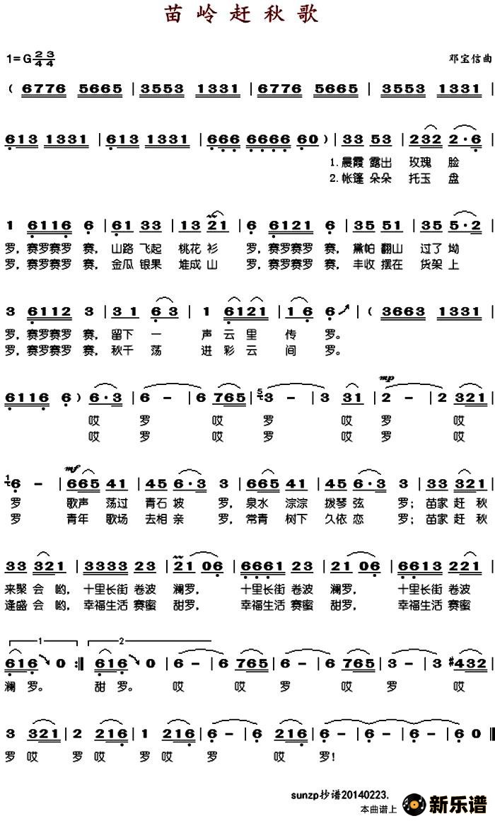 > 苗岭赶秋歌最新曲谱