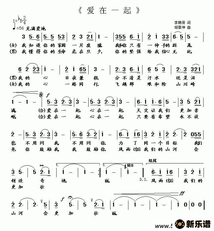 朱跃明演唱的爱在一起歌词,爱在一起最新曲谱.