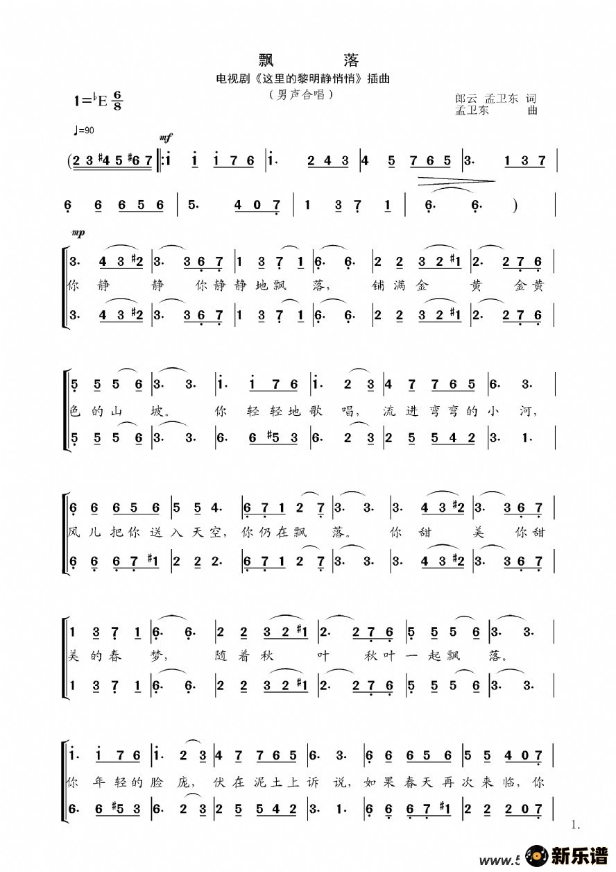 > 飘落(电视剧《这里的黎明静悄悄》插曲)最新曲谱
