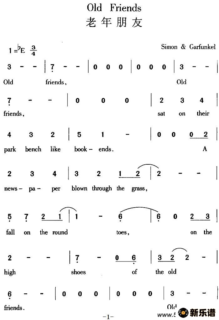 演唱的old friends 老年朋友歌词,old friends 老年朋友最新曲谱.