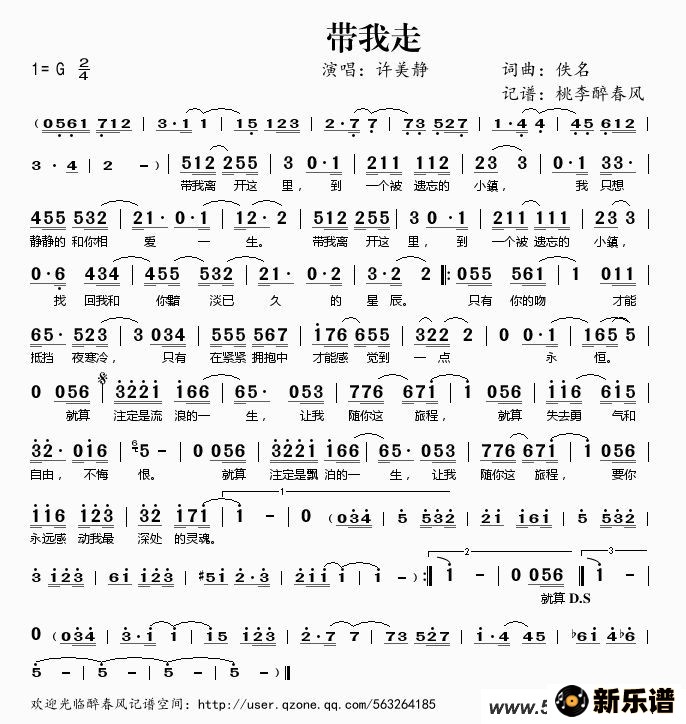 《带我走》最新曲谱 许美静-桃李醉春风制谱