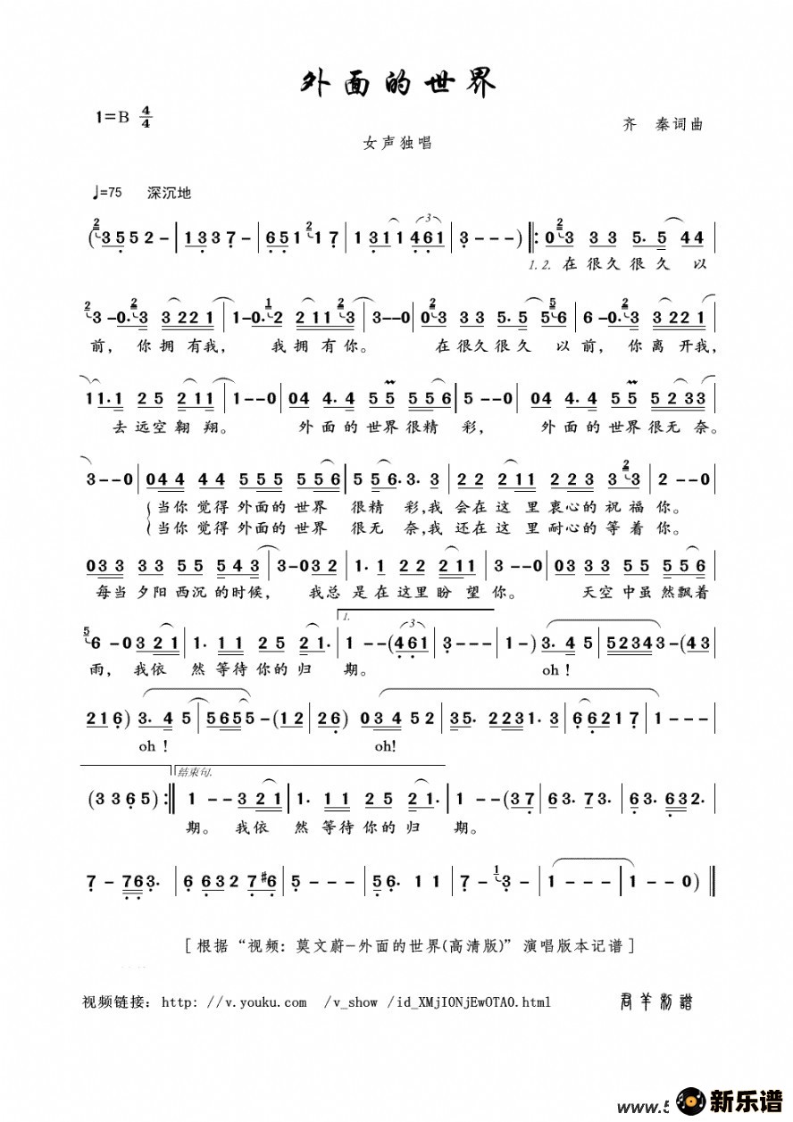 《外面的世界》最新曲谱 莫文蔚-君羊制谱